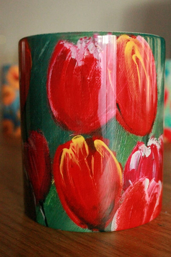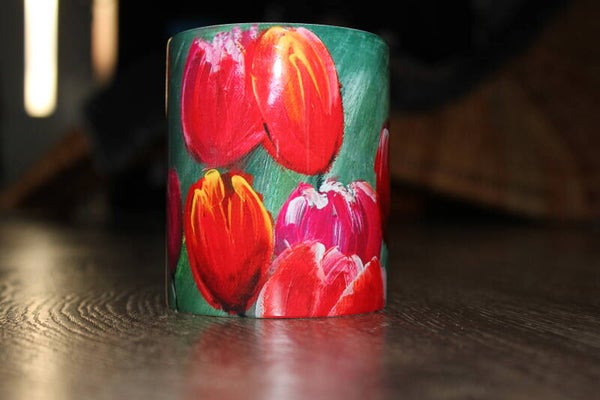 "TULPEN"-Der Becher ist nicht nur ein Gebrauchsgegenstand,sondern ein Ausdruck meiner Kreativität. Dieser Becher ist eine wunderbare Geschenkidee für Kunstliebhaber, Blumenfreunde oder einfach Menschen, die das Besondere schätzen.